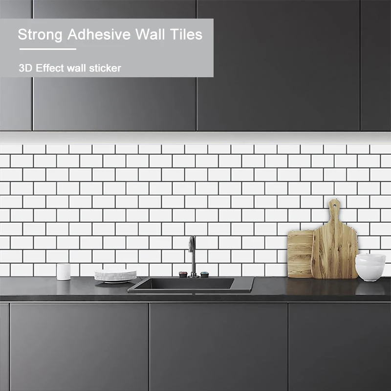 Пилинг и палочка могут быть обработаны на всех гладких, чистых и сухих поверхностях, таких как окрашенная гипсокартон или даже прямо над керамической плиткой. Просто очистить и приклеить, легко установить его. Все, что вам нужно, это линейка, карандаш, ткань и ножницы. Этот проект позволит вам сэкономить время и деньги по сравнению с реальной плиткой. И не стоит беспокоиться, что плитка не подходит к размеру Вашей стены, так как ее легко резать.