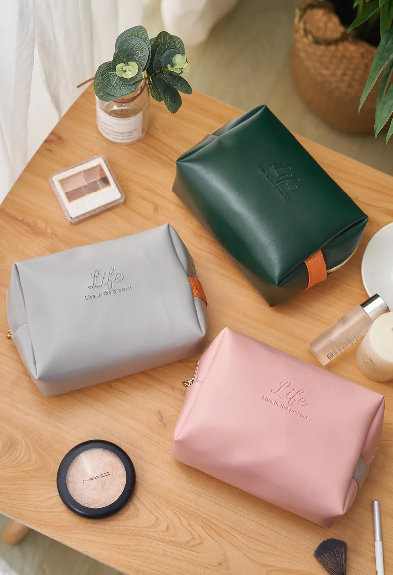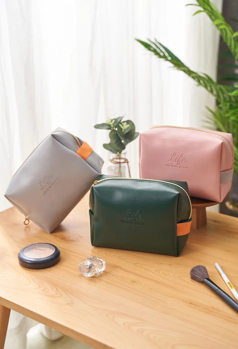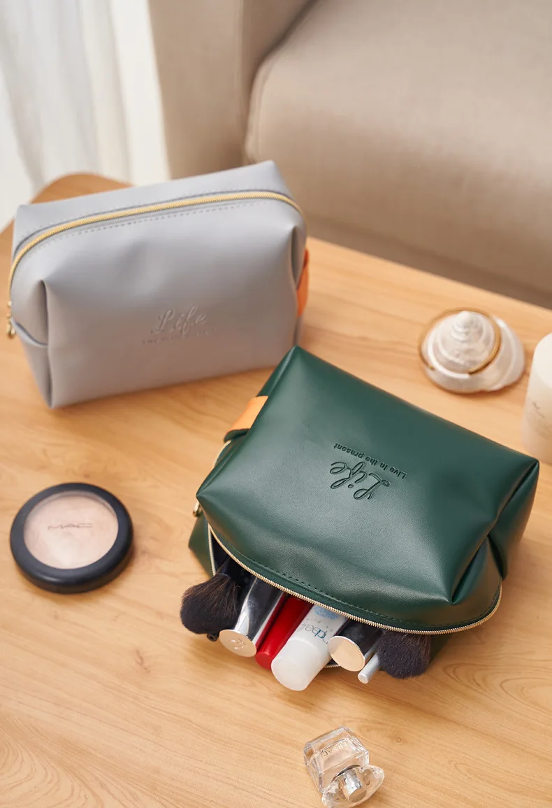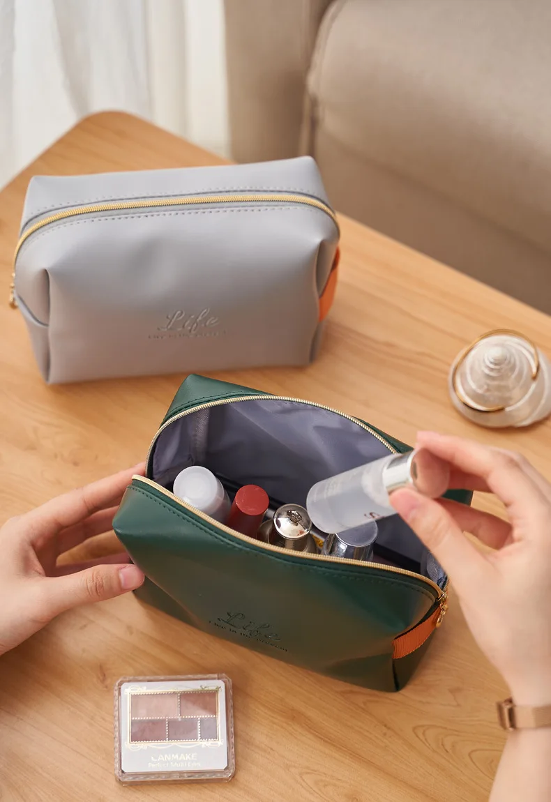1 шт. однотонная косметичка для женщин, мягкая кожаная Водонепрониц...