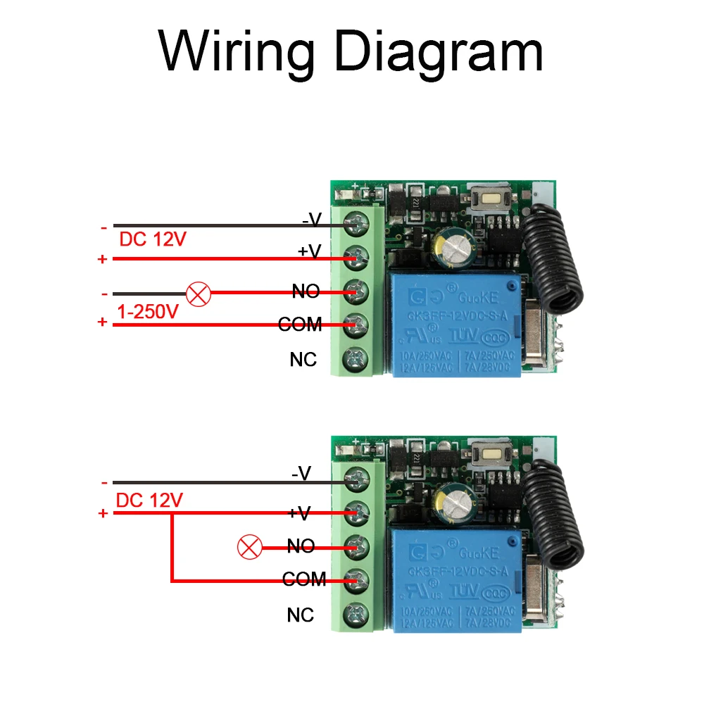 Переключение: Нажмите, как только кнопка дистанционного управления, реле подключается, нажмите кнопку дистанционного управления дважды, реле отключается.