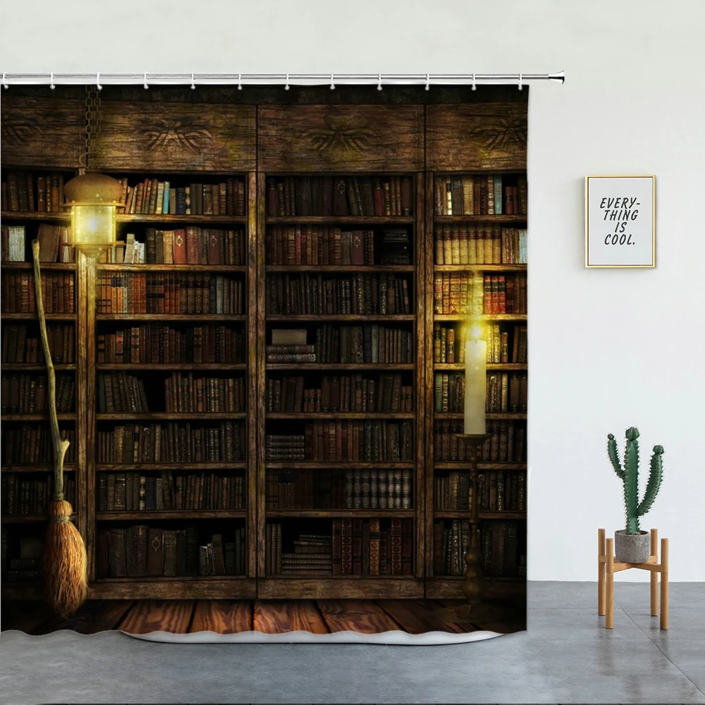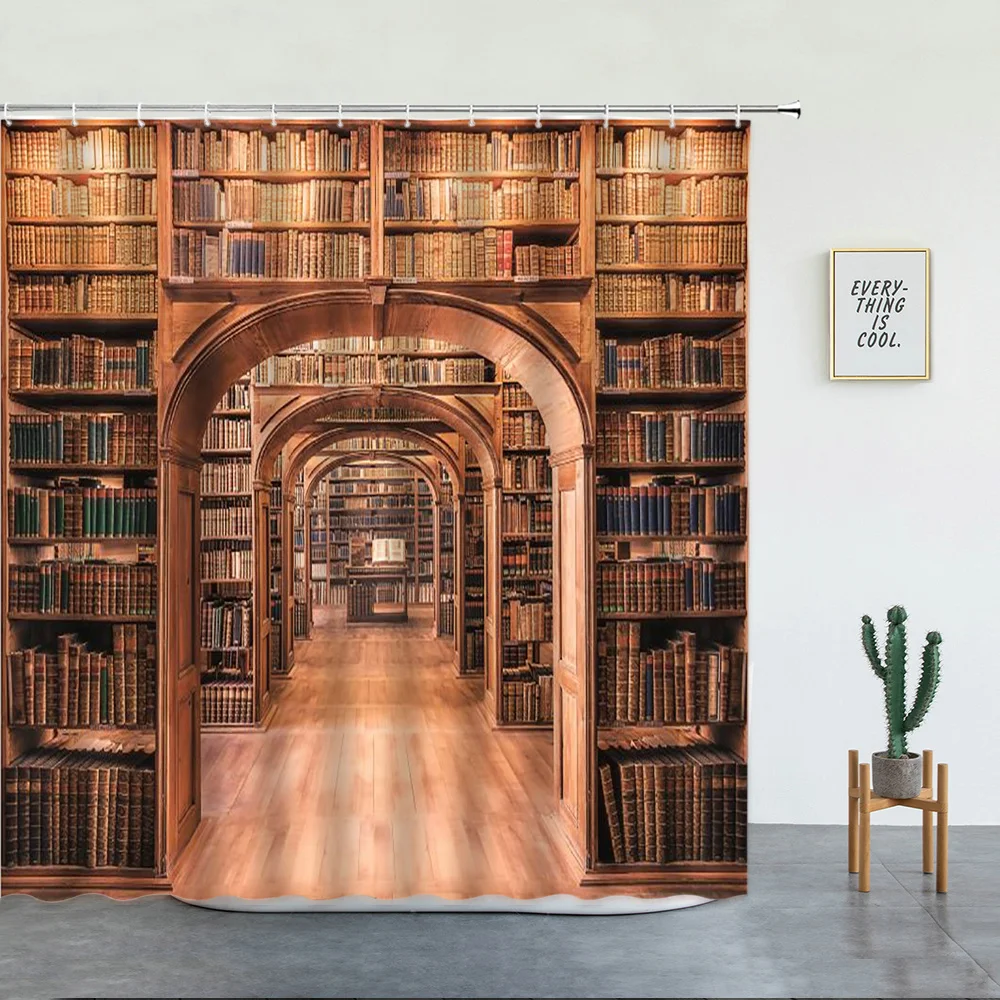 Книжная полка для библиотеки, книжный магазин, набор занавесок для душа с принтом, настенная подвеска фоновый гобелен, декор для ванной комнаты в стиле ретро, экран для ванны