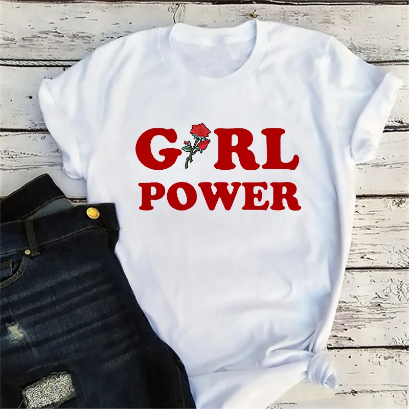Женская футболка с надписью Power, модная Феминистская футболка, женские топы, одежда с рисунком, белые футболки большого размера