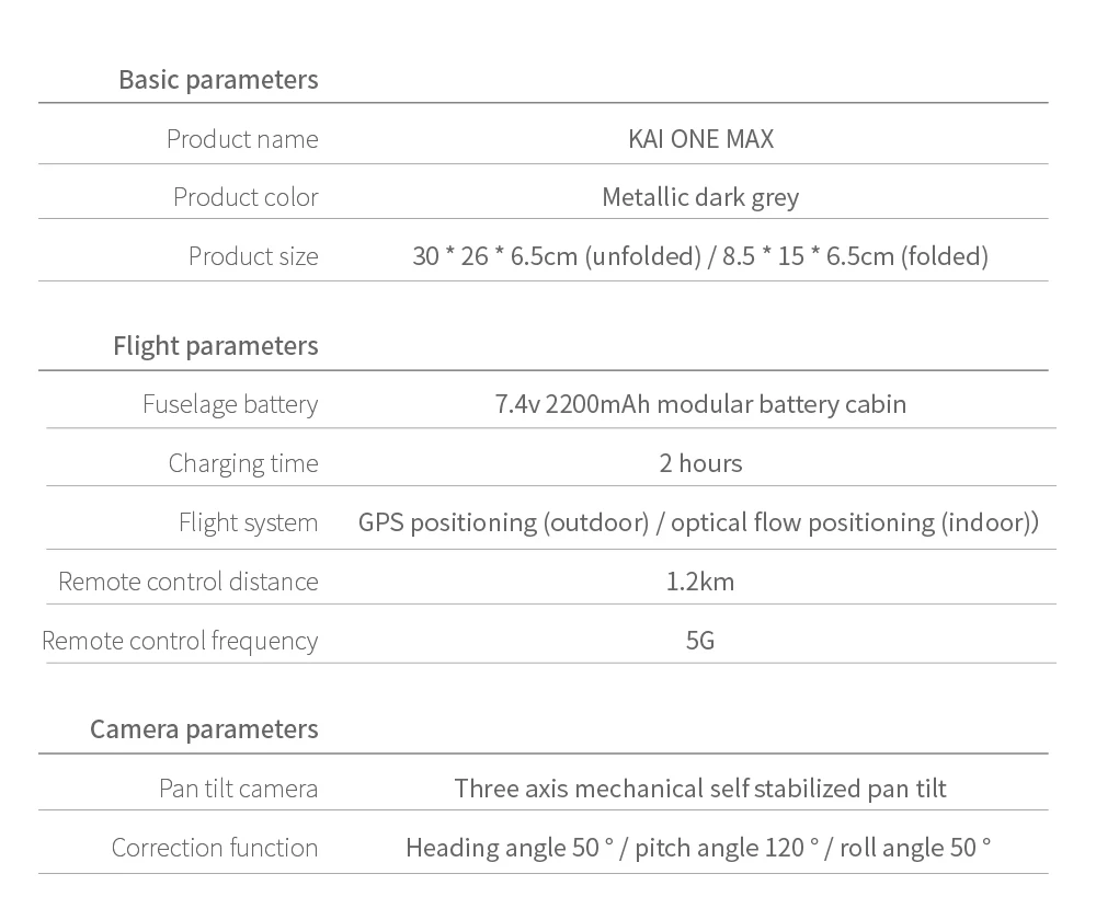 Название позиции: KAI ONE PRO UAVЦвет: черныйРазмер квадрокоптера: 36x36x6 см (в разложенном виде) 15,5x9,2x6 см (в сложенном виде)Батарея дрона: литиевая батарея 7,4 В, 2200 мАчВремя полета: около 20-25 минутВремя зарядки: около 2 часовБатарея дистанционного управления: литиевая батарея в комплектеДистанция управления: 1200 м (свободные помехи и отсутствие окклюзии)5G расстояние передачи изображения Wi-Fi: 100 м (без помех и окклюзии)Взлетная масса: 280 гДвигатель: бесщеточный двигатель 1806Датчик давления: Настройка высотыСтрельба По жесту руки: 1-5 мКамера: широкоугольная камера 8KВерхнее изображение объектива 8K (7680P x 4320P) /видео 4K (3840P x 2160P)Нижнее изображение объектива 1080P (1920P x 1280P)/видео 720P (1280P x 720P)Частота кадров: 25 кадров в секундуПосылка1 х RC Квадрокоптер1 х пульт дистанционного управления1 х пропеллеры (пара)1 x USB-кабель для зарядки1 x Инструкция по эксплуатации