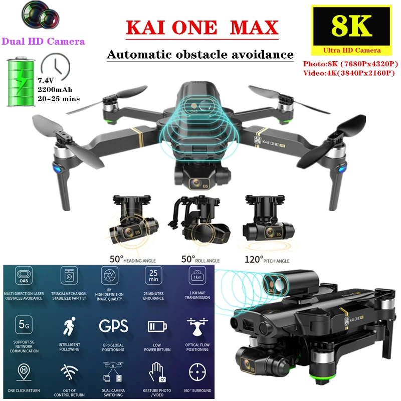 Дрон KAI ONE MAX, GPS, камера 8K ESC HD с 3-осевым самостабилизирующимся стабилизатором