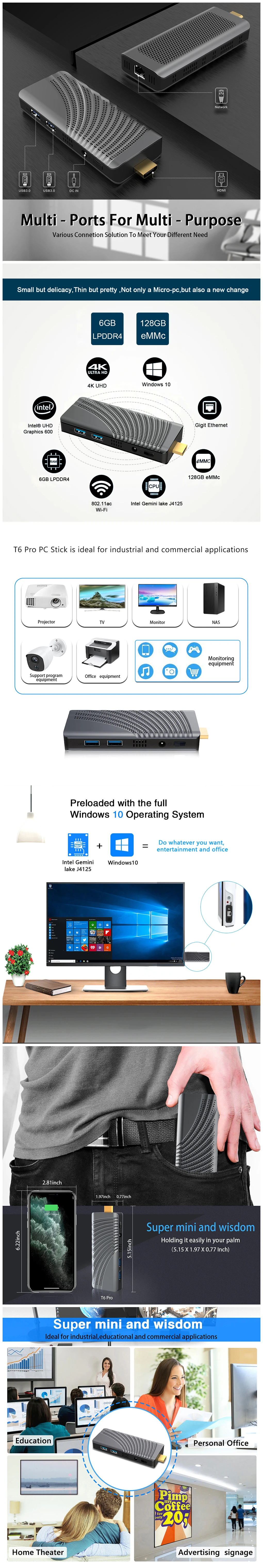 Мини-ПК T6 Pro, ПК-флешка 6G 128G Intel Celeron J4125, Win10 Linux ...