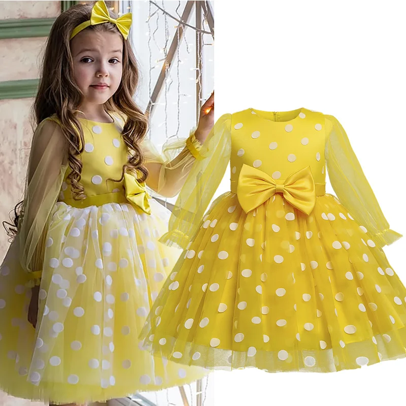 Элегантные свадебные платья для девочек, платье принцессы в горошек с длинным рукавом, детское вечервечерние платье-пачка из тюля, бальное платье для выпускного, детская одежда