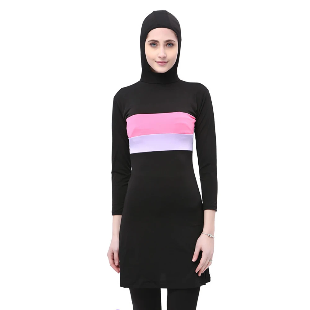 Burkini мусульманские купальники, Женский хиджаб, спортивные мусульманские женщины, купальник с длинным рукавом, Черный Скромный купальный костюм, женский полосатый