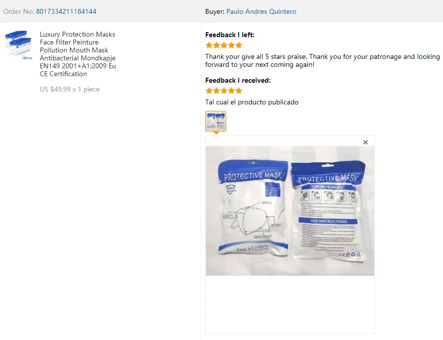 Страна: US Color: FFP3 5 Pcs Доставка: Standard Shipping 08.09.2021