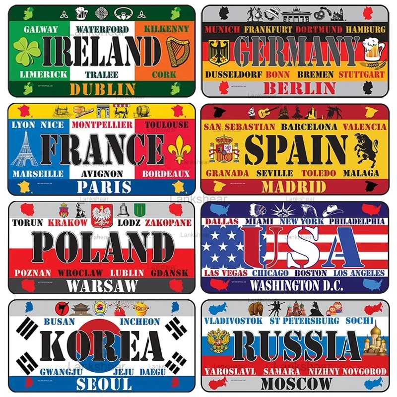 Металлический жестяной знак, винтажный, для Франции, Испании, США, номерной знак, табличка, бара, дома, ресторана, Настенный декор, 15x30 см