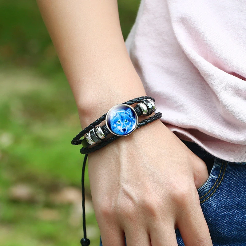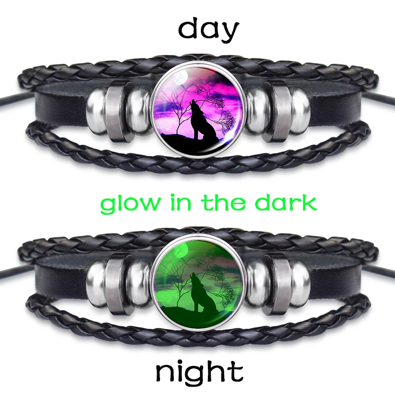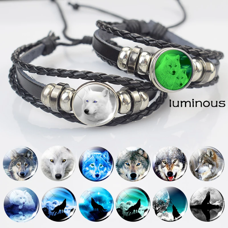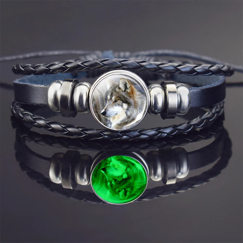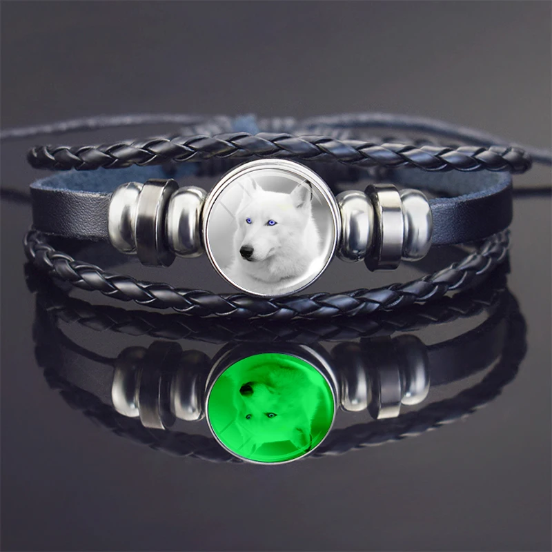 Светящийся Белый Волк многослойный Плетеный браслет ручной работы волк искусство картина стеклянный купол черная кожа мужские браслеты ювелирные изделия подарок