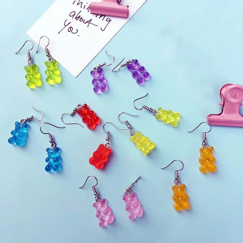 Модные полимерные Мармеладные медведи, висячие серьги для женщин и девочек, сделай сам, Мультяшные медведи, креативные Висячие ювелирные изделия, подарки
