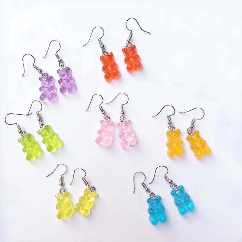 Карамельный цвет мультфильм Медведь ушной крючок милые Креативные Прозрачные Серьги