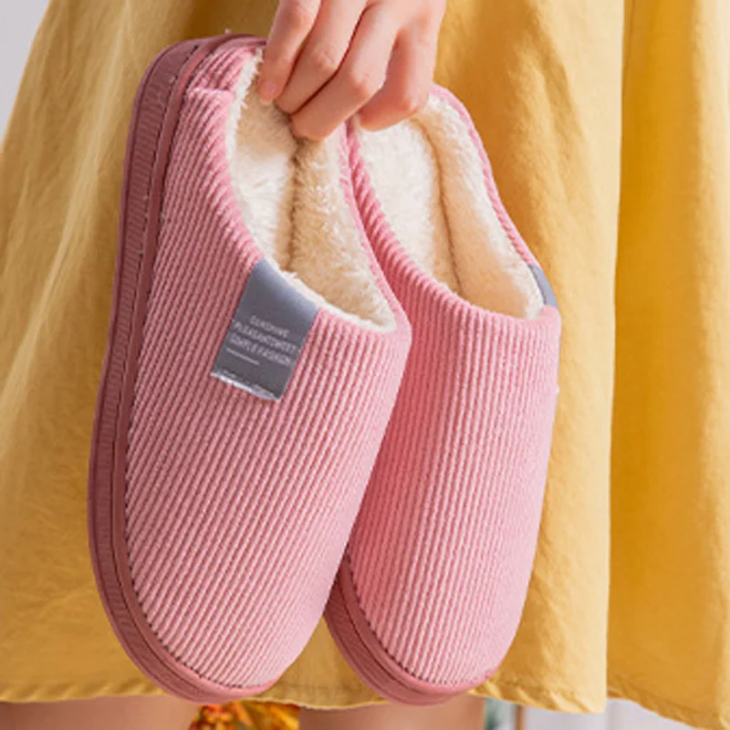 2022, вельветовые зимние домашние меховые сланцы, женские и мужские плюшевые Нескользящие ботинки из пены с эффектом памяти, Осенние уличные комнатные хлопковые тапочки для пар
