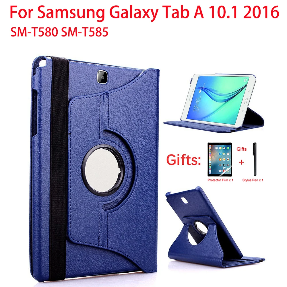 Чехол с вращением на 360 градусов для Samsung Galaxy Tab A 10,1 T580 T585, чехол из искусственной кожи TabA SM T580N, подставка для планшета, Чехол + пленка + ручкаХарактеристики продукта:* 100% новые чехлы.* Прочный и моющийся.* Изготовлен из высококачественного материала.* Защитите от пыли, царапин и ударов* Модный дизайн, легко надеть и легко снятьСовместимость:Чехол для Samsung Galaxy Tab A 10,1 2016 SM-T580 SM-T585Посылка входит:1 х защитный чехол1 стилус1 х мягкая пленка для экрана