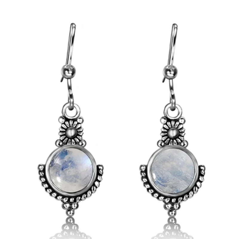 Женские серьги-подвески из натурального лунного камня, серебро 925 пробы, ювелирные изделия для помолвки, вечерние, Подарок на годовщину, Ретро стиль