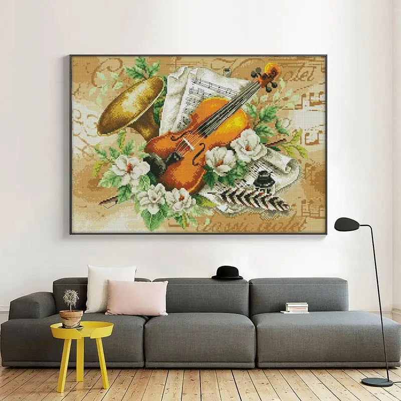 Набор для вышивки скрипкой и цветами 11CT 14CT, Набор для вышивки, холст с рисунком, хлопчатобумажная нить, домашний декор