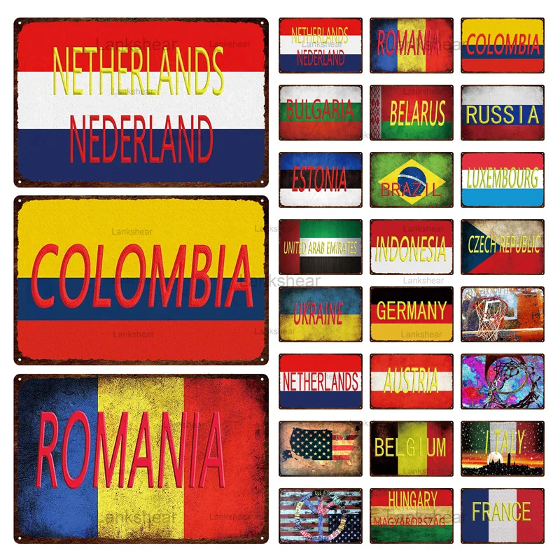 Ретро Государственный флаг страны металлический знак винтажный номерной знак фотобар паб гостиная Настенный декор Австрия Россия 6Oo-2