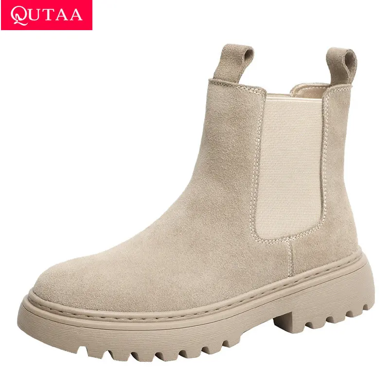 QUTAA2022 женские ботильоны; Сезон осень-зима; Повседневная обувь из коровьей замши на квадратном каблуке и платформе с круглым носком; Женская обувь; Размеры 35-40