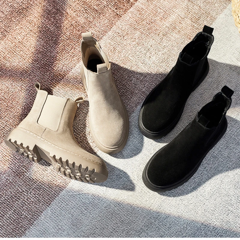 Ботинки-челси женские замшевые осенние на платформе, без застежек