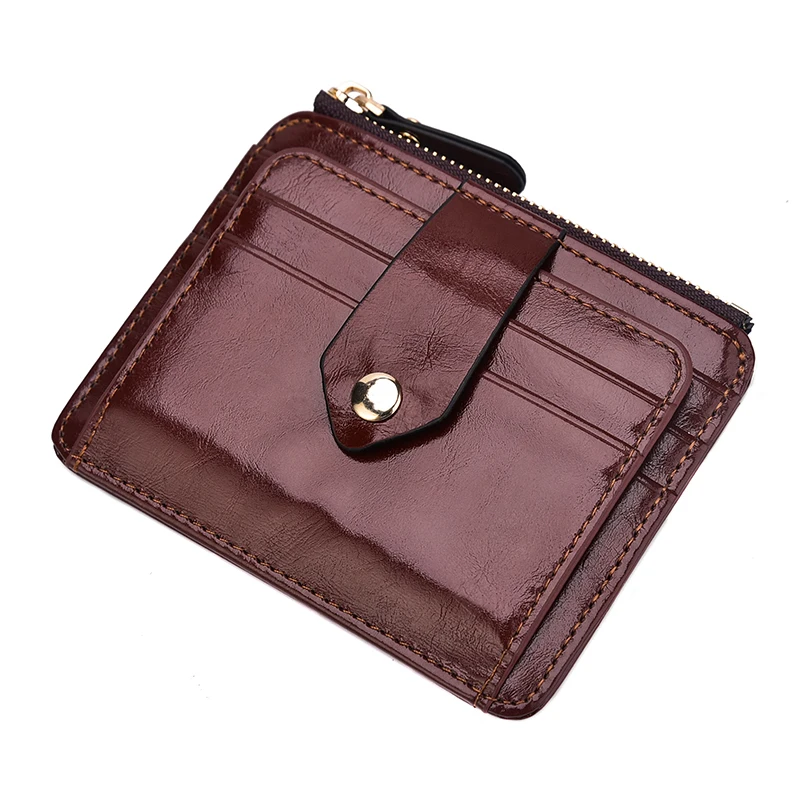 Модный маленький кошелек из вощеной кожи для женщин, стильный кошелек на молнии и застежке для карт, мужской Высококачественный короткий кошелек с держателем для кредитных карт