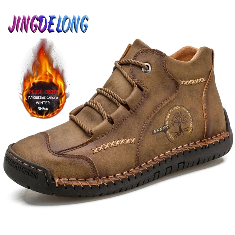 Зимние мужские ботинки; Теплые меховые мужские зимние ботинки из натуральной кожи; Плюшевые водонепроницаемые ботинки ручной работы; Осенние мужские ботинки в байкерском стиле