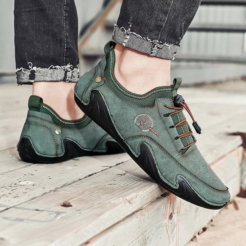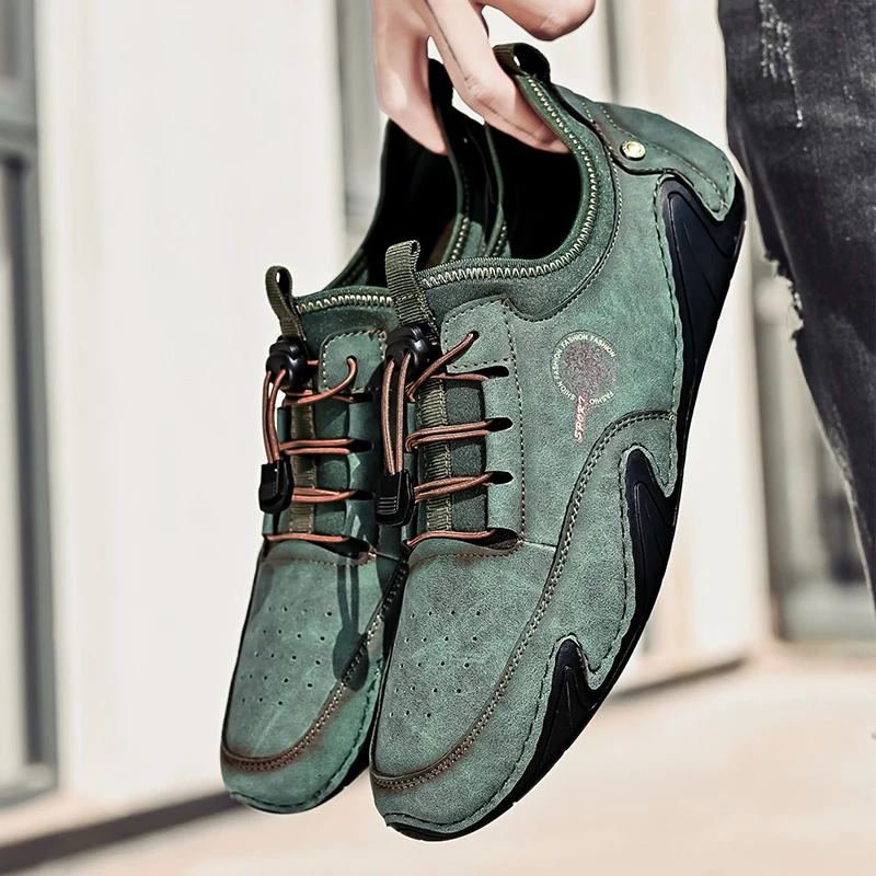 Мужские классические повседневные туфли, Брендовые мужские лоферы 2021, Кожаные Мокасины, дышащая обувь без шнуровки для вождения, зеленые туфли 55-48