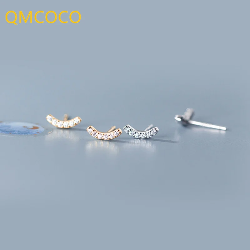 QMCOCO минималистичные серьги серебряного цвета для женщин, серьги в форме флуоресцентной дуги из циркония, Простые Модные украшения для вечерние