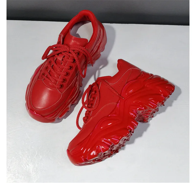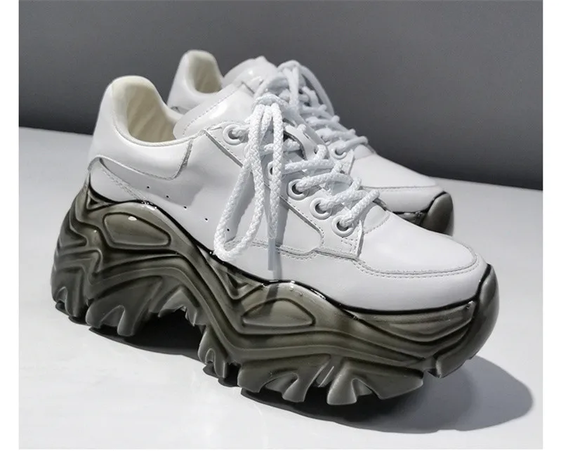 Женские кроссовки на шнуровке, кожаные туфли на толстой подошве, с ...