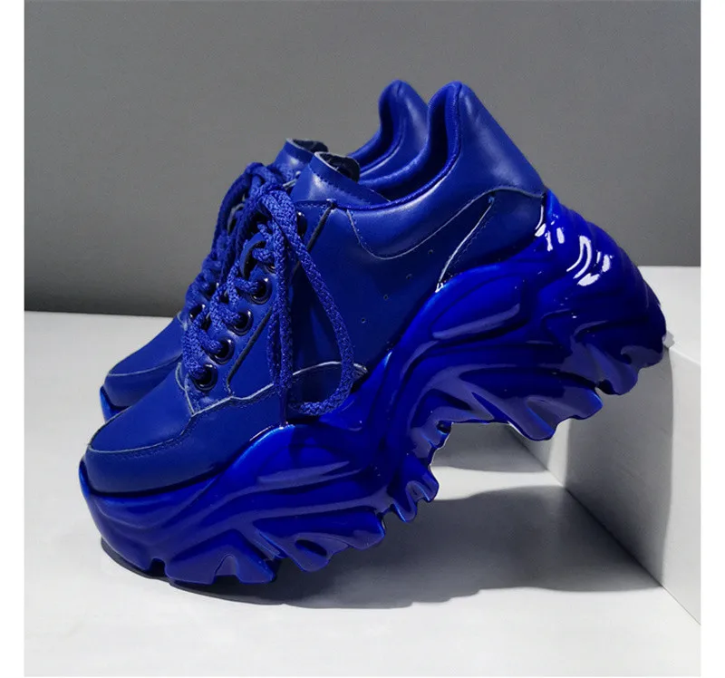 Женские кроссовки из лакированной кожи, на шнуровке, круглый носок,...