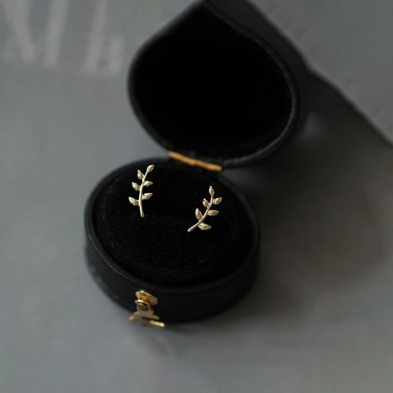 Серьги-гвоздики женские из серебра 925 пробы, с листьями, 14 карат