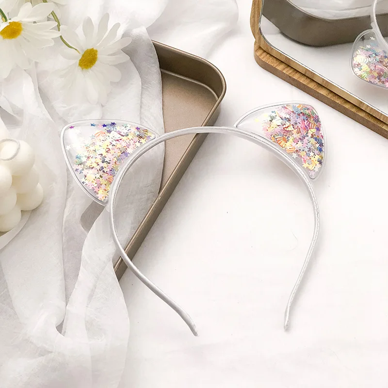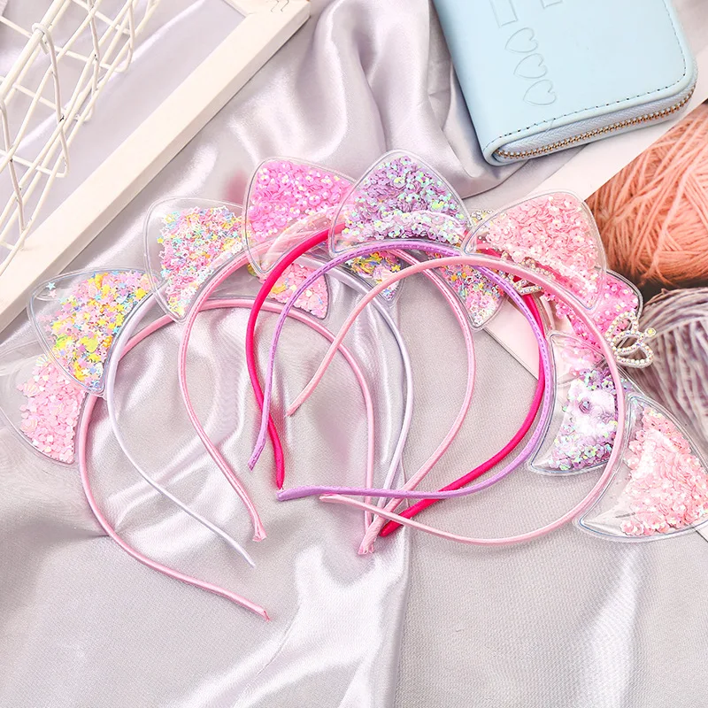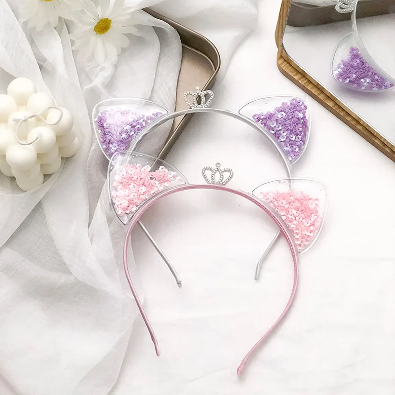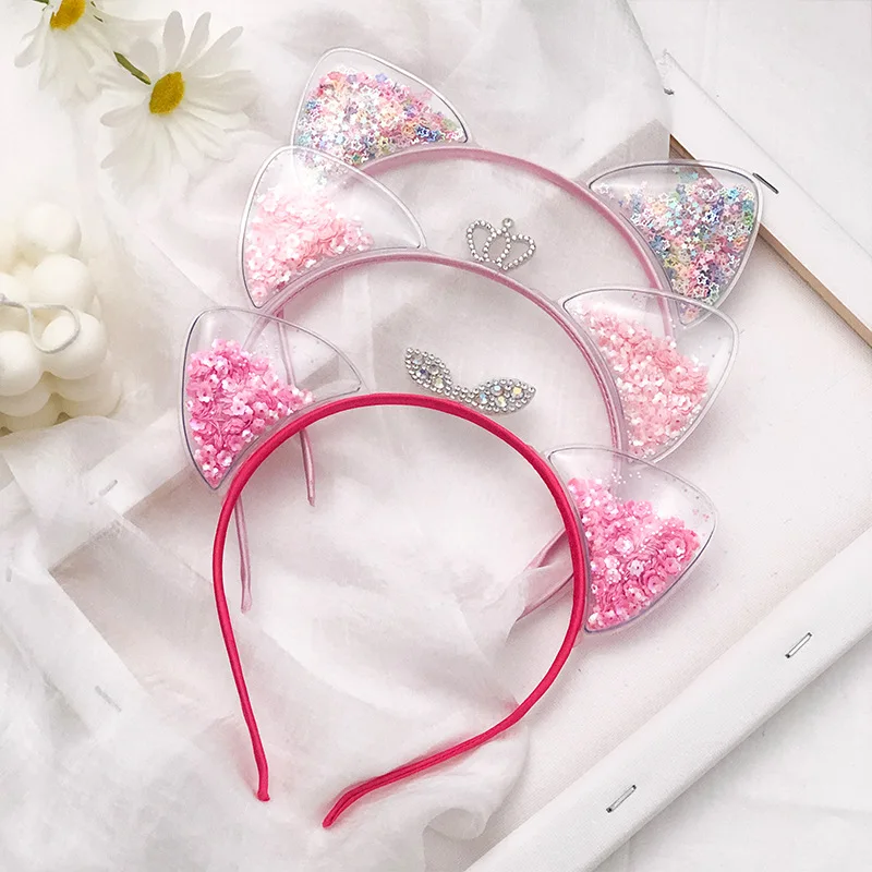 Fashion Children Cute Cat Ears Hair Hoop Simple Kids Quicksand Crown Hairbands For Baby Girls Ponytail Headwear Hair Accessories