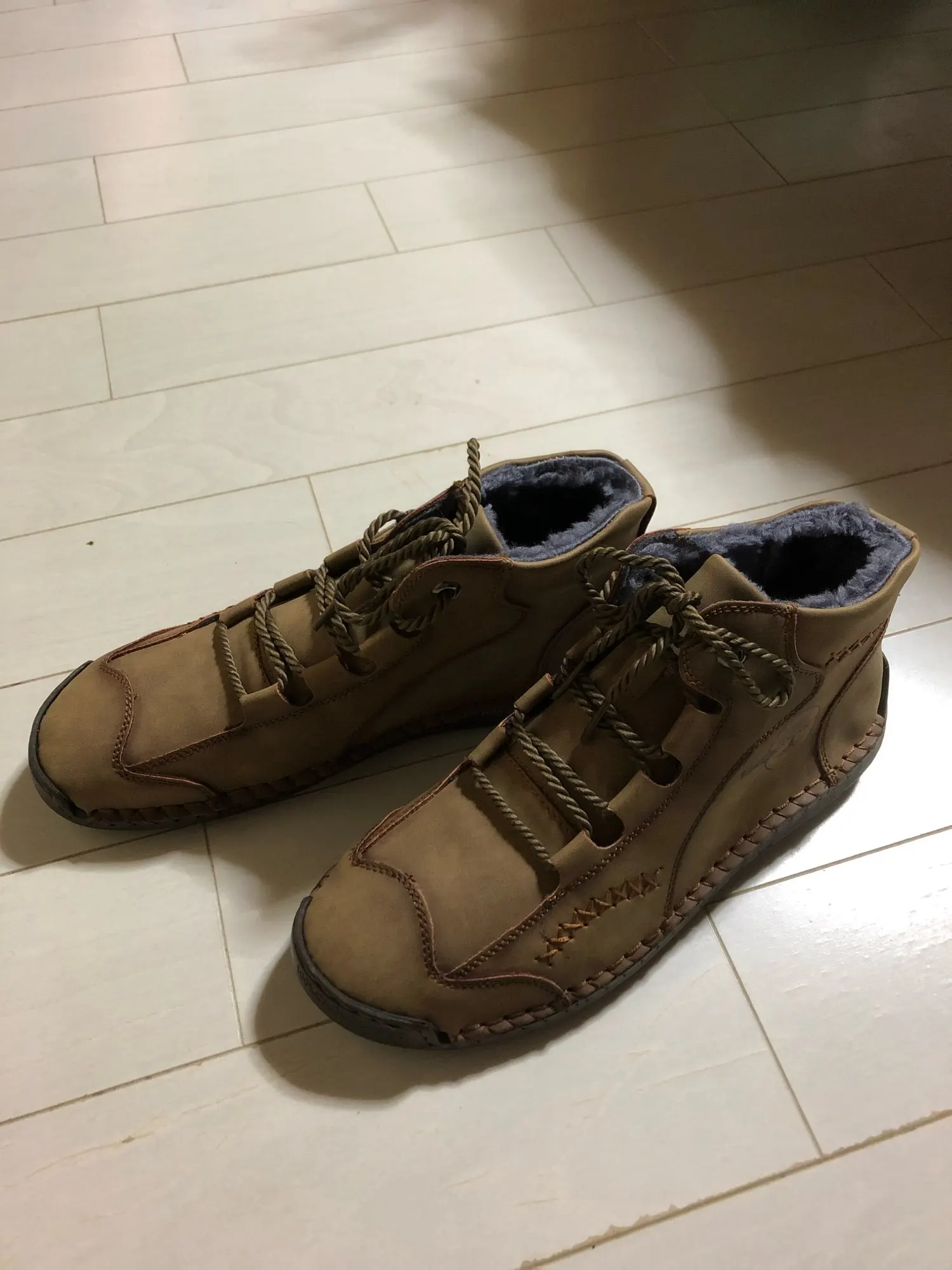 Мужские зимние ботинки из натуральной кожи, с мехом, водонепроницаемые