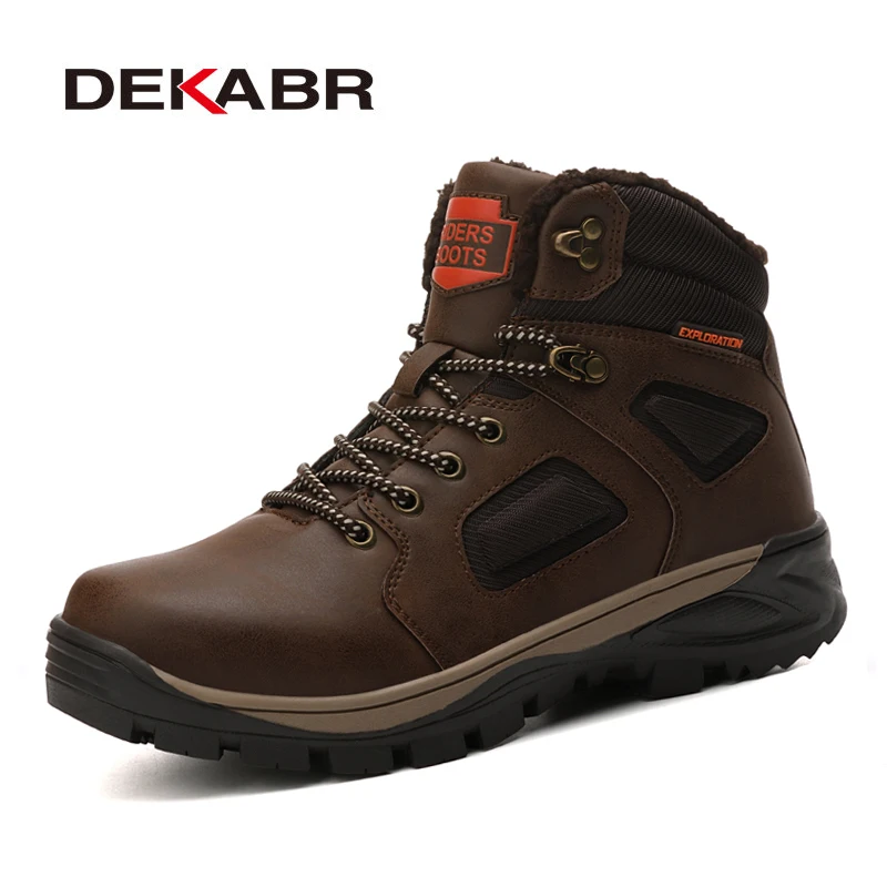 DEKABRмужские водонепроницаемые теплые ботинки из спилка; Мужская повседневная обувь; Модные ботильоны для мужчин; Высокие уличные зимние мужские ботинки