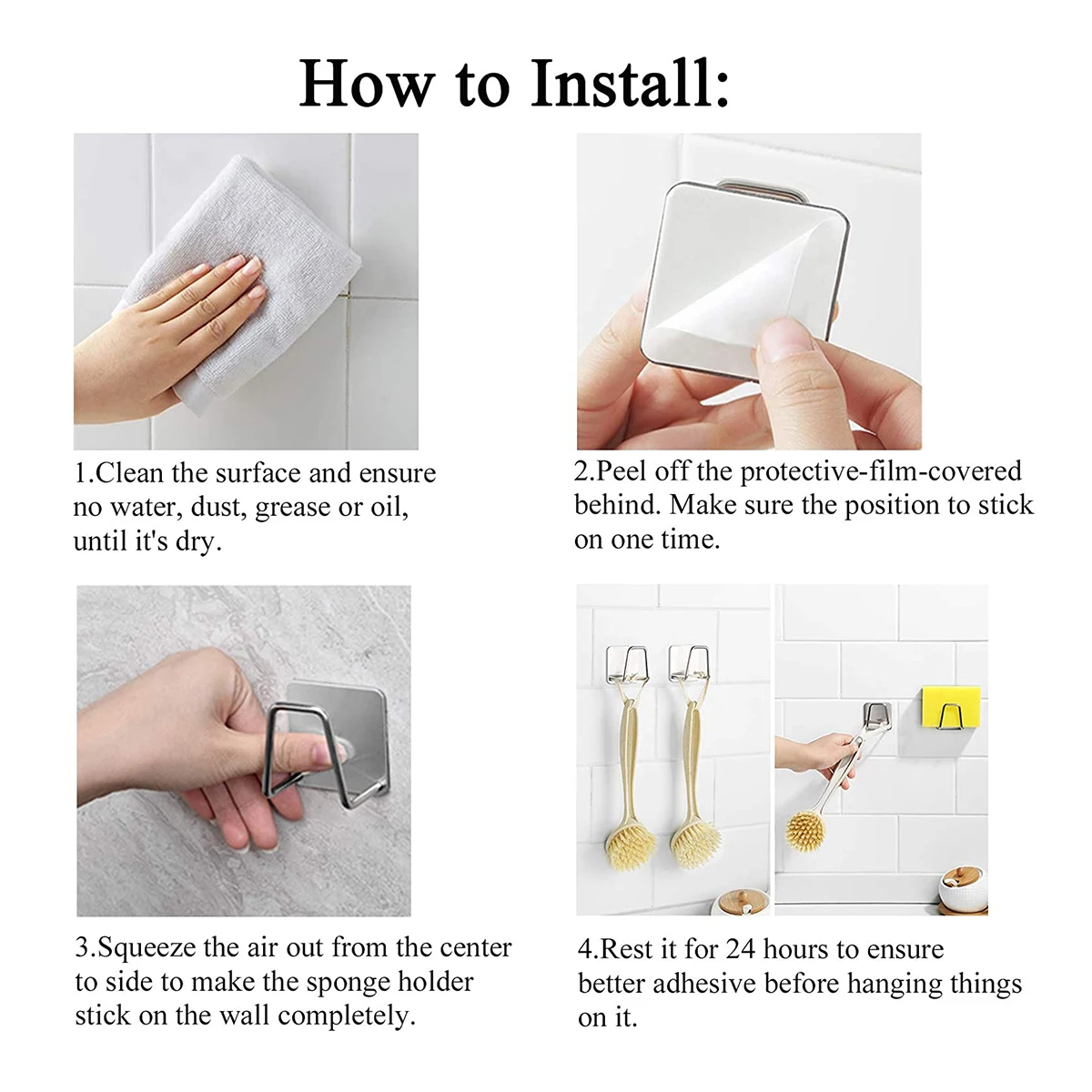 Держатель губок на раковине изготовлен из нержавеющей стали SUS304 с матовой отделкой. Устойчивая и водонепроницаемая. Мощный клей может держать 8 фунтов в ежедневном использовании, более прочный и прочный, чем присоска.Размер: 1,81x1,81x1,18 дюймов. Держатель для губки посуды не займет много места при мытье посуды или овощей. Небольшой дизайн, но многофункциональный.Простота установки, без сверления: Просто снимите защитный слой и Наклейте его на нужное положение. Важно держать раковину сухой и чистой перед наклеиванием.Специальный держатель губки для раковины: открытая конструкция позволяет воде сливать, губка быстро высыхает в раковине, не оставляя посторонних сообщений.Не только как губка Caddy для кухонной раковины, но также может быть органайзер для раковины ситечко. Используйте его на кухне, ванной и в любом месте.