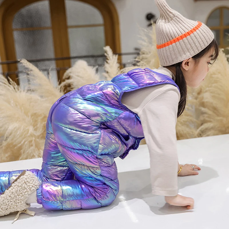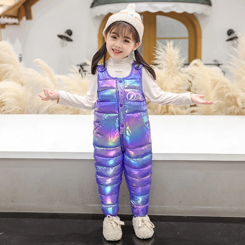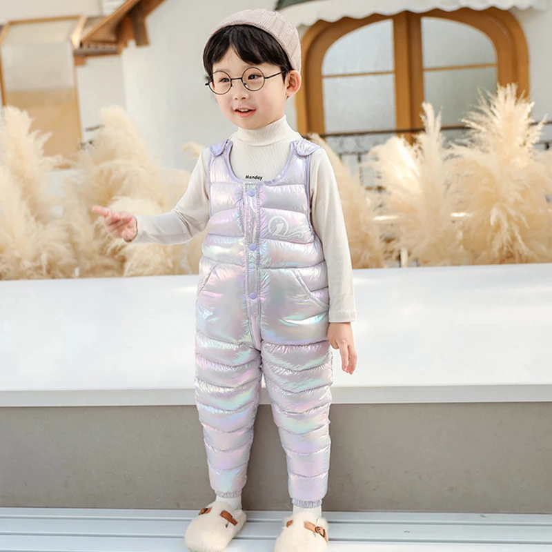 2021 г. Новые модные детские штаны яркие блестящие Комбинезоны для маленьких девочек и мальчиков осенне-зимние хлопковые теплые плотные детские комбинезоны, брюки