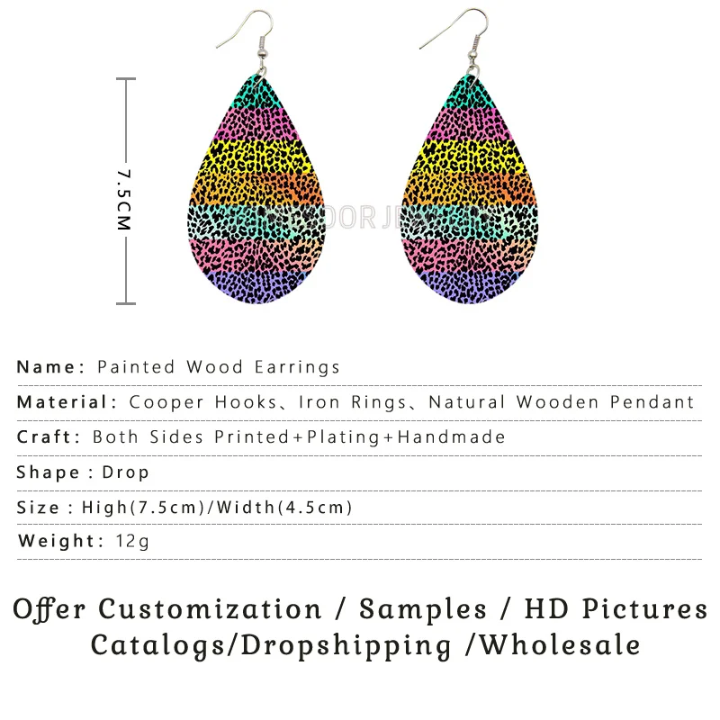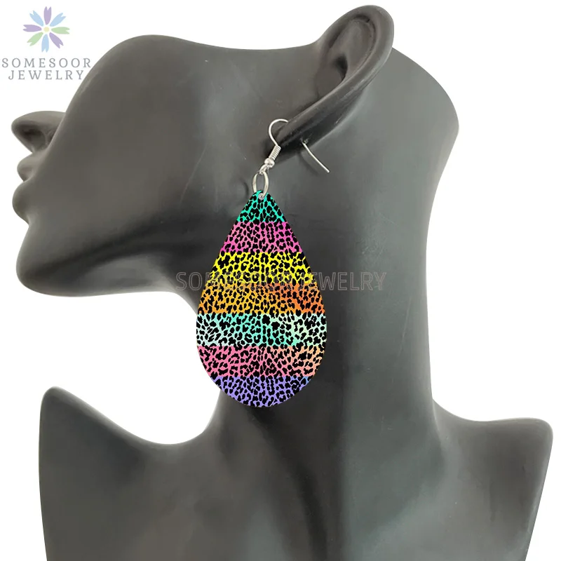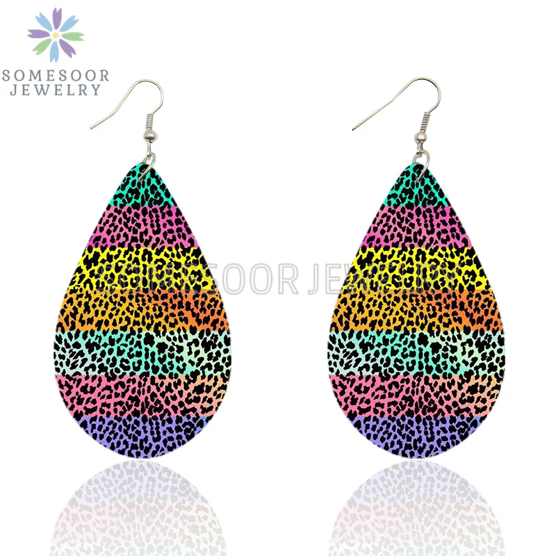 Деревянные серьги-подвески SOMESOOR с радужным леопардовым узором, ...