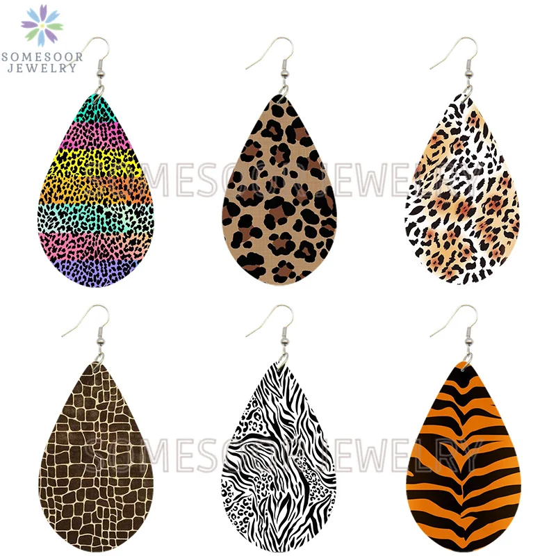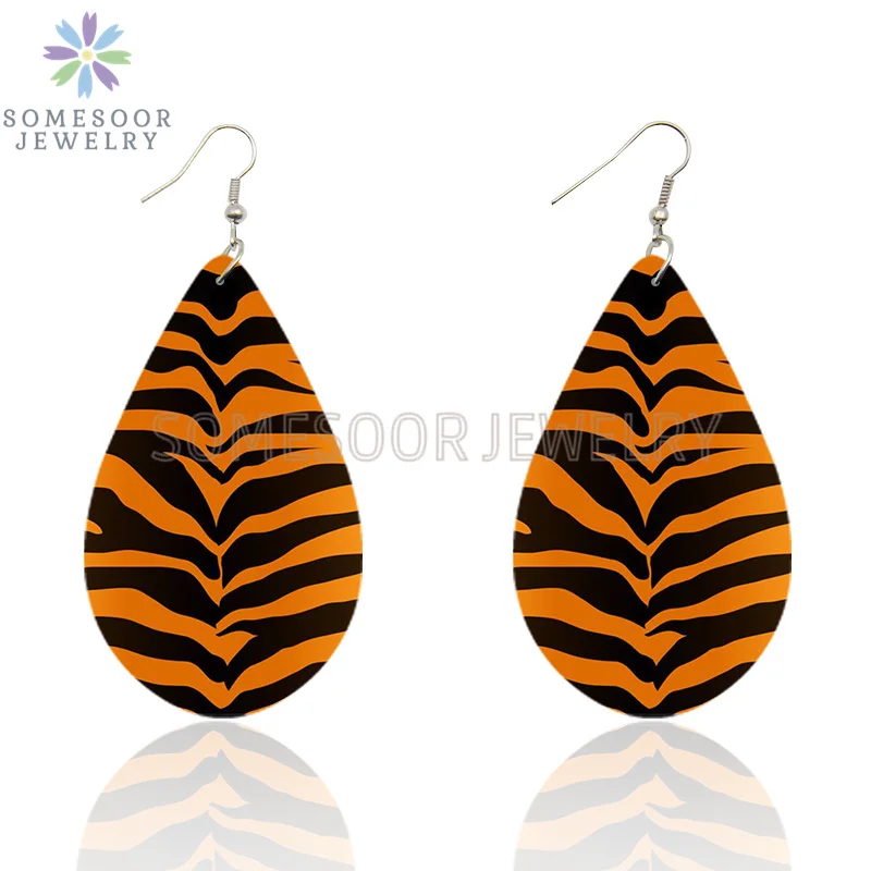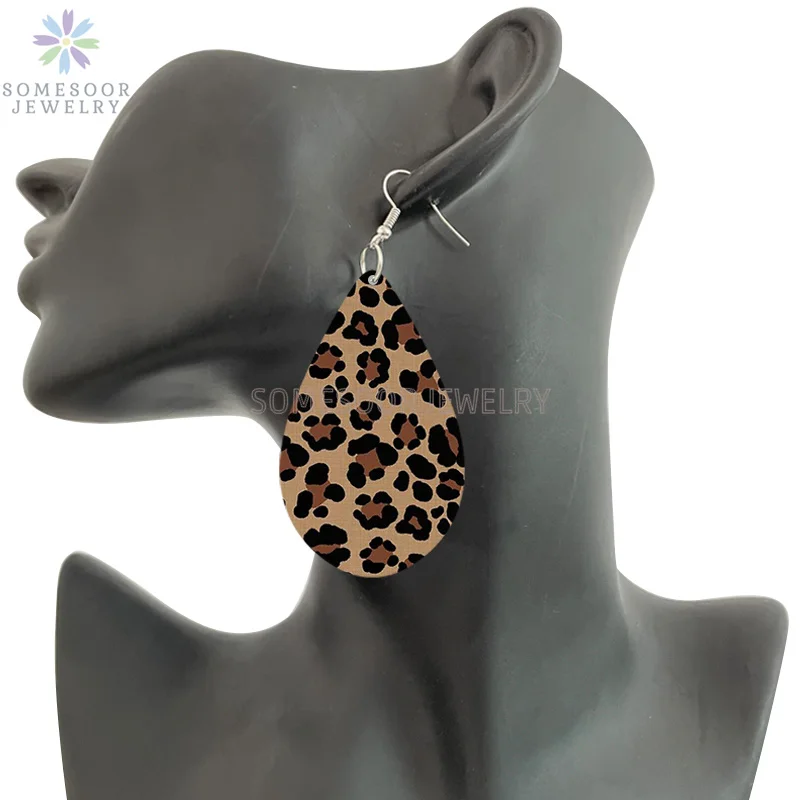 SOMESOOR деревянные висячие серьги с принтом в виде животного, леопард, тигр, Зебра, змея, висячие серьги для женщин, подарки