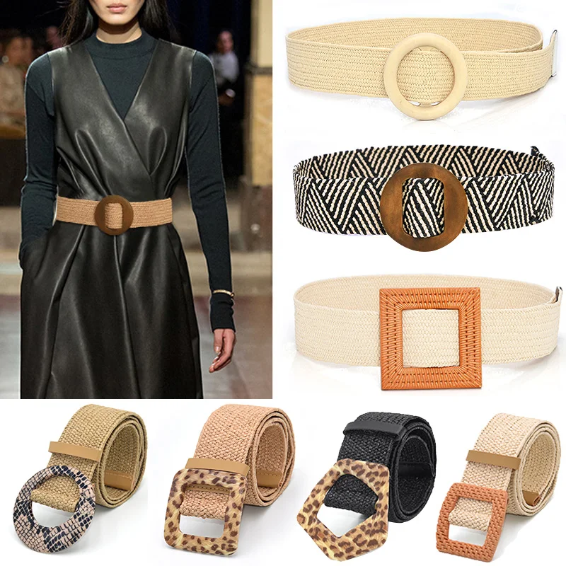 Соломенный тканый пояс для отпуска, женские эластичные богемные рем...