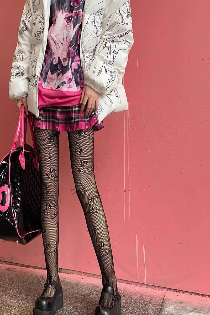 Черные колготки в стиле панк для девушек, чулки в сетку с рисунком ...