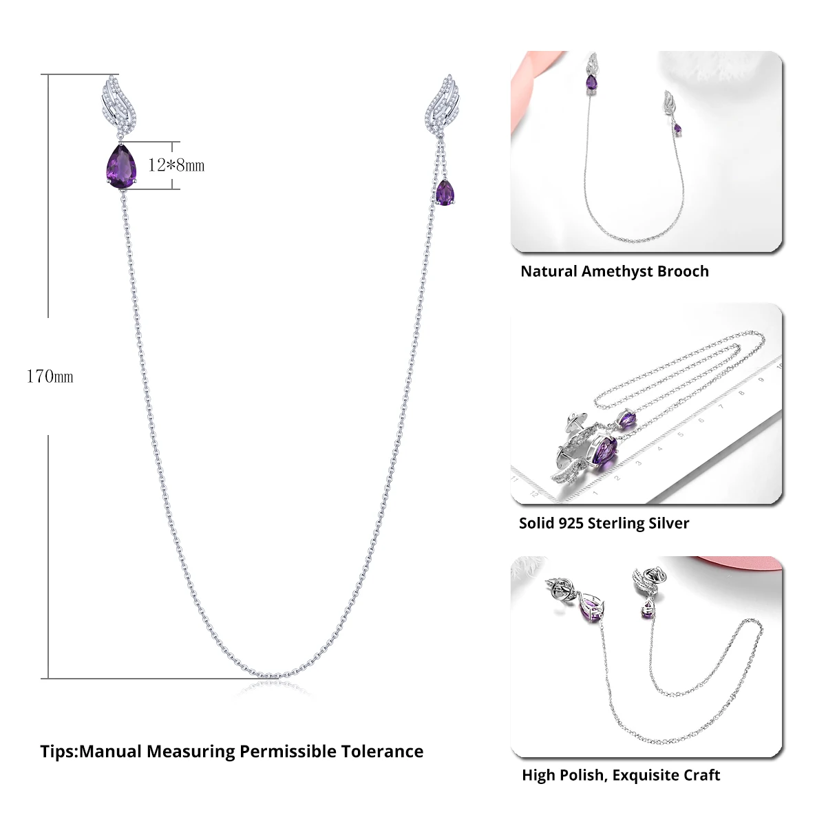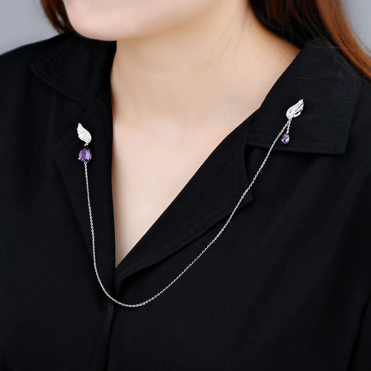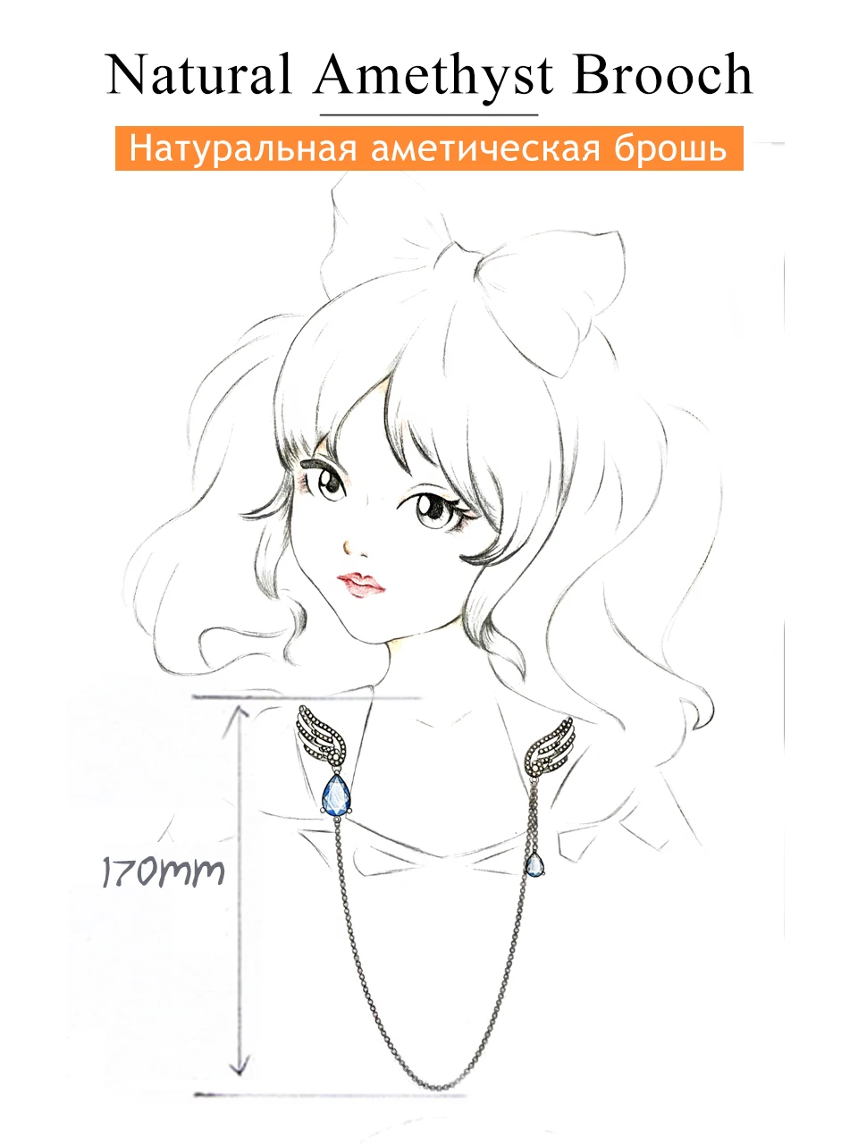 Натуральная африканская аметистовая однотонная Бриллиантовая серебряная брошь с цепочкой и топазом версия идеальное украшение для блузки или рубашки