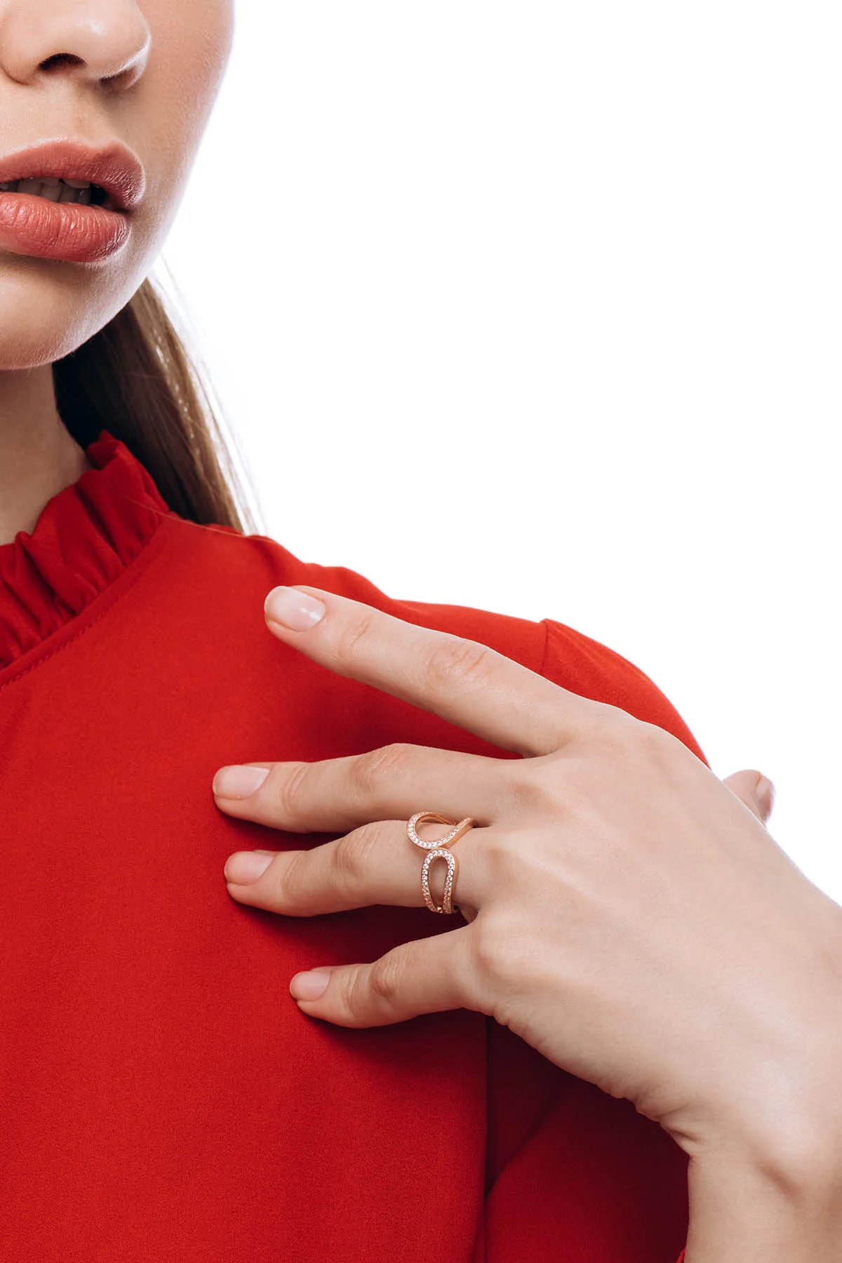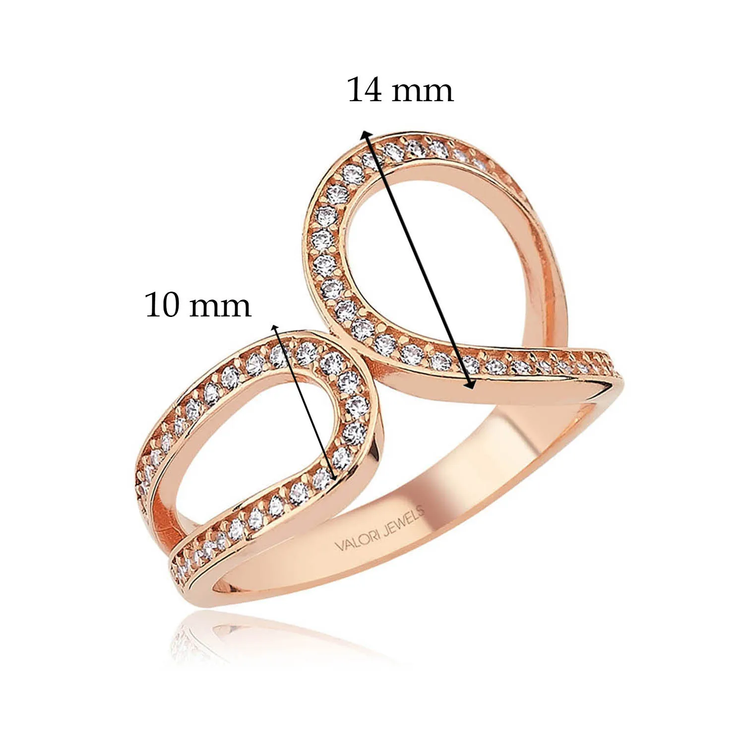 Особый дизайн, кольцо из серебра с цирконием и белым драгоценным камнем, розовое золото