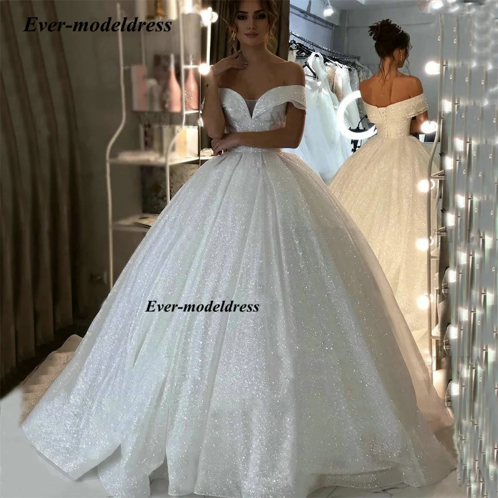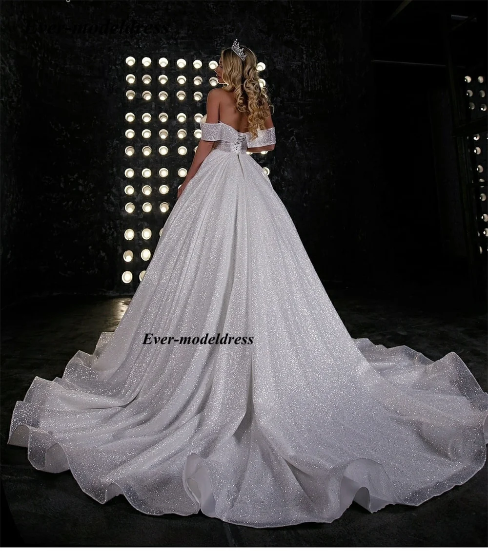 Новинка 2022, блестящие свадебные платья, бальное платье принцессы, на шнуровке, с открытыми плечами и открытой спиной, сексуальное Сверкающее свадебное платье