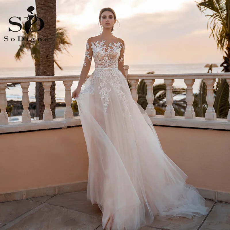 LORIE элегантные кружевные свадебные платья с длинным рукавом 2020 ...