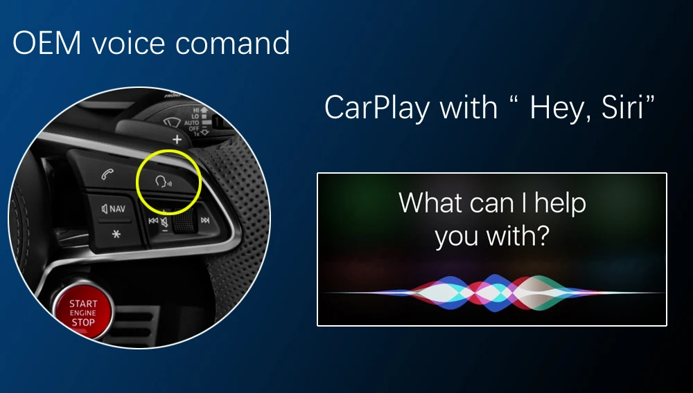 Этот потрясающий набор добавляет полную функциональность CarPlay к существующему MMI, сохраняя все оригинальные функции MMI. Система CarPlay Поддерживает кнопки и управление рулевым колесом и интегрирована с консолью или перчаточным боксом USB.