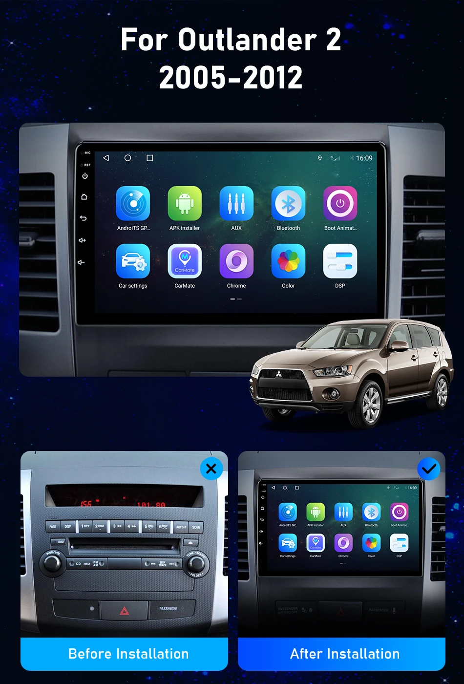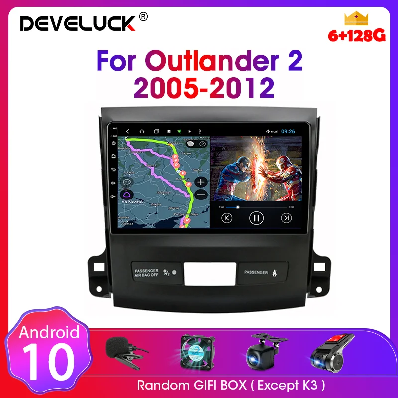 Автомагнитола 2 Din, 9 дюймов, Android 10, GPS-навигация, мультимедийный плеер RDS DSP 4G WIFI, DVD для Mitsubishi Outlander Xl 2 CW0W 2005-2012