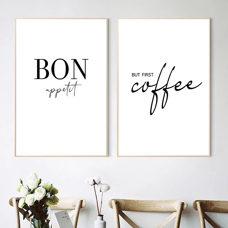 Художественный декор для кухни, но первый кофейные постеры приятного аппетита, черно-белая настенная Картина на холсте для столовой