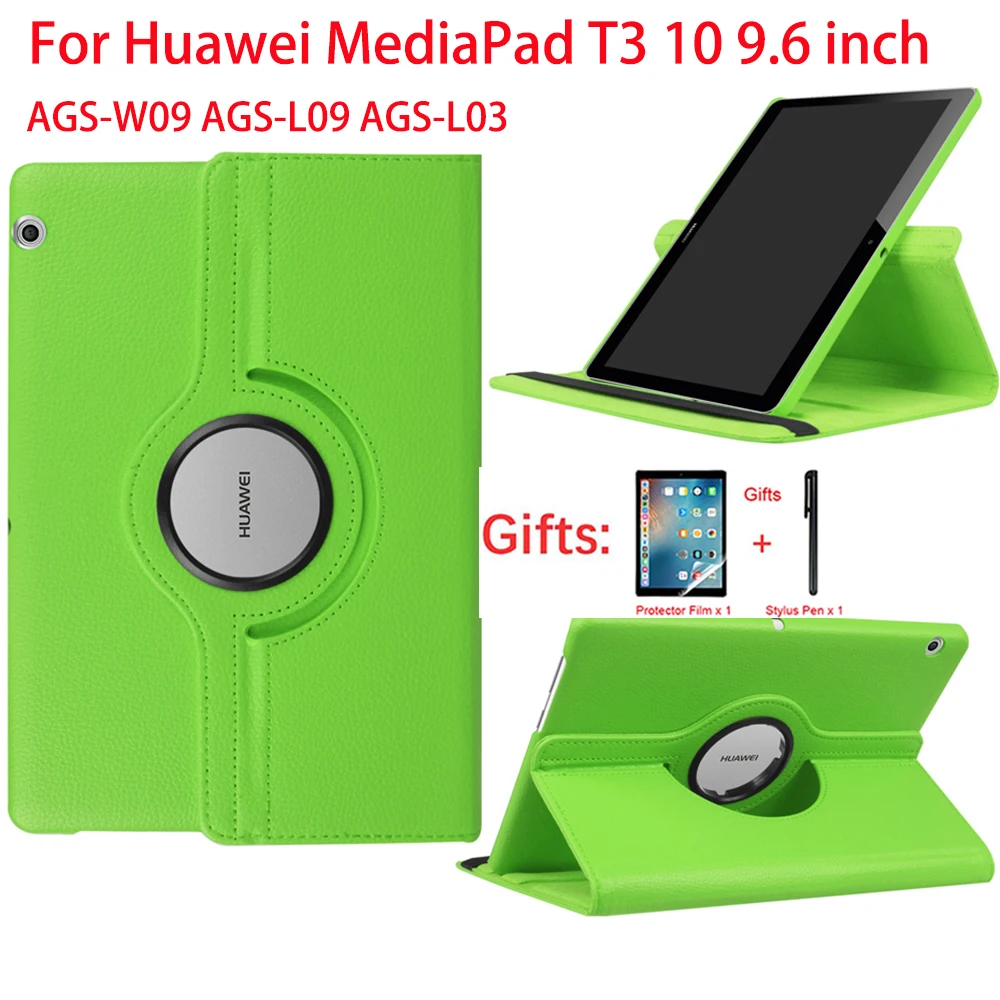 Вращающийся на 360 градусов чехол из искусственной кожи защитный чехол для T3 10 9,6 дюймов Huawei MediaPad T3 9,6 AGS-W09 AGS-L09/L03 чехол для планшетаХарактеристика продукта:* 100% абсолютно новые чехлы.* Прочный и моющийся.* Изготовлен из высококачественного материала.* Защитите от пыли, царапин и ударов* Модный дизайн, легко надевать и сниматьСовместимость на уровне систем:Для Huawei MediaPad T3 10 AGS-W09 AGS-L09 AGS-L03 9,6"Пакет включает в себя:1 х защитный чехол1 х стилус1 х Мягкая экранная пленка
