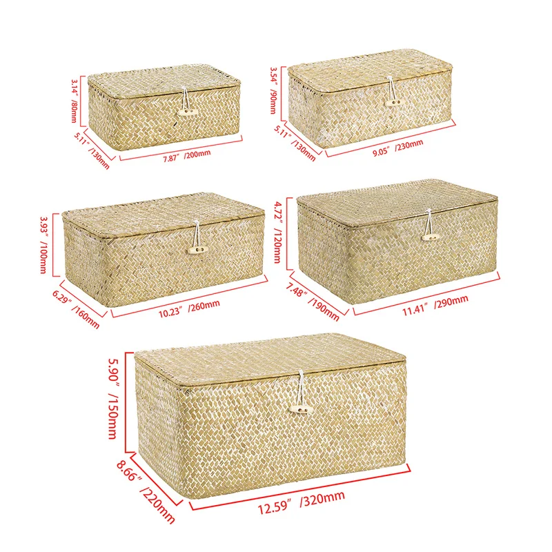 Прямоугольные соломенные ящики для хранения с крышками, плетеные вр...
