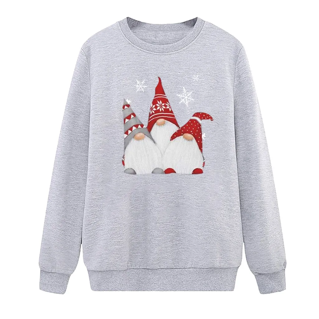 Модные женские толстовки, повседневный Свободный джемпер с круглым вырезом и рождественским принтом, Свободный пуловер с длинным рукавом, топы, Свитшот