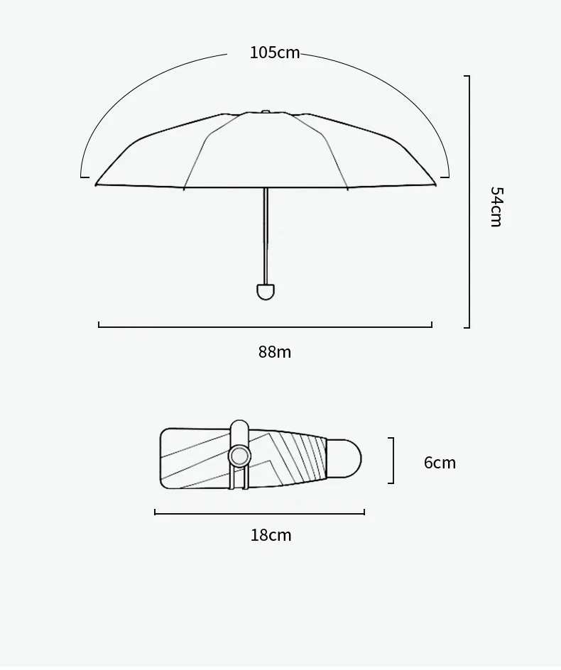 Ультралегкий мини зонт от солнца, 18 см, Карманный Зонт, черный пла...