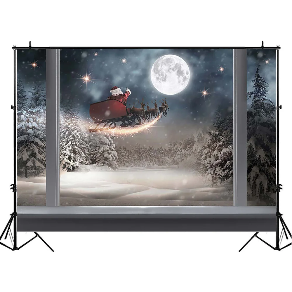 Mocsicka Зимний снег фон для фотостудии окно луна Санта Клаус Рождественская елка Новорожденный ребенок фотография фон